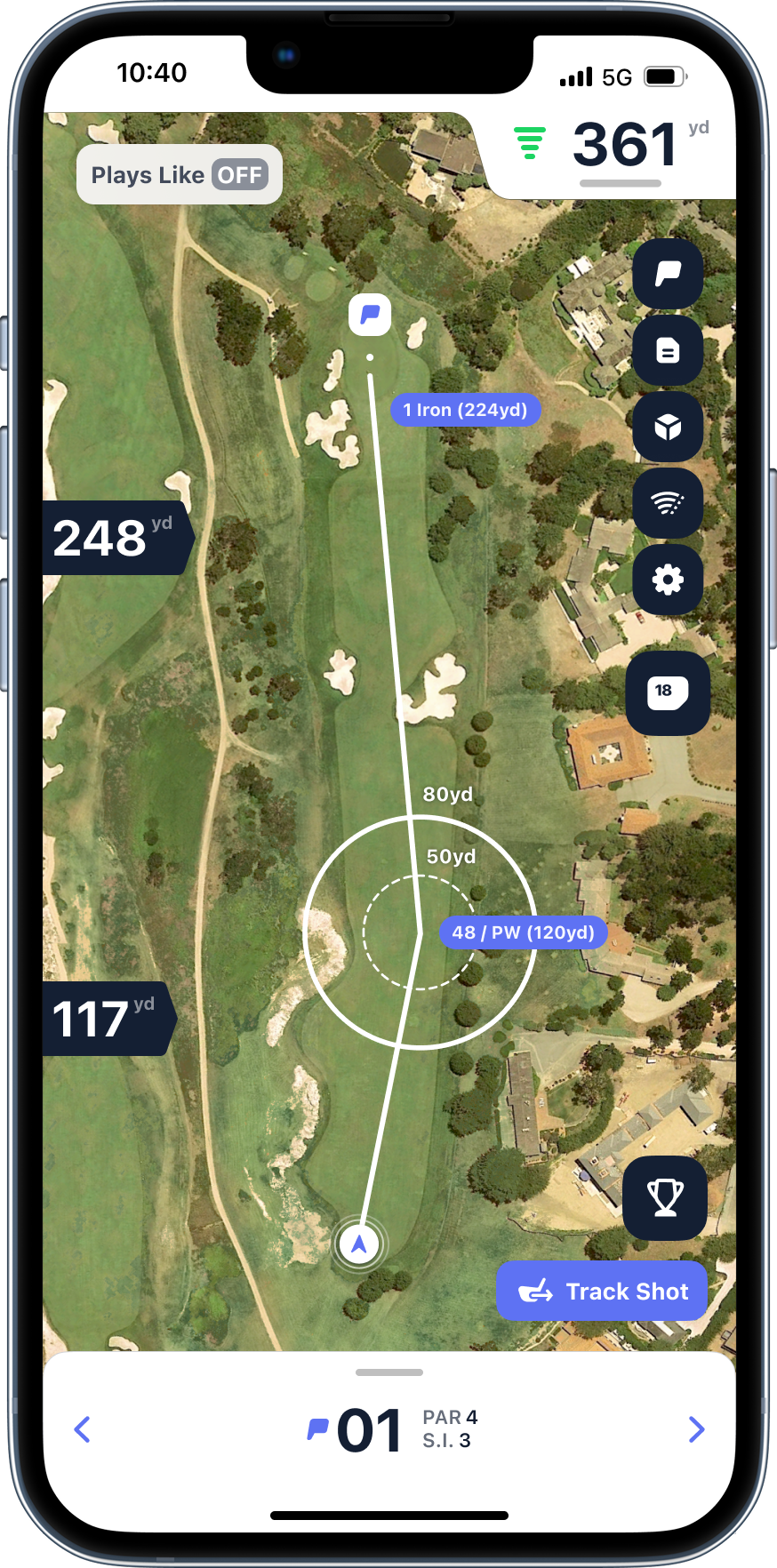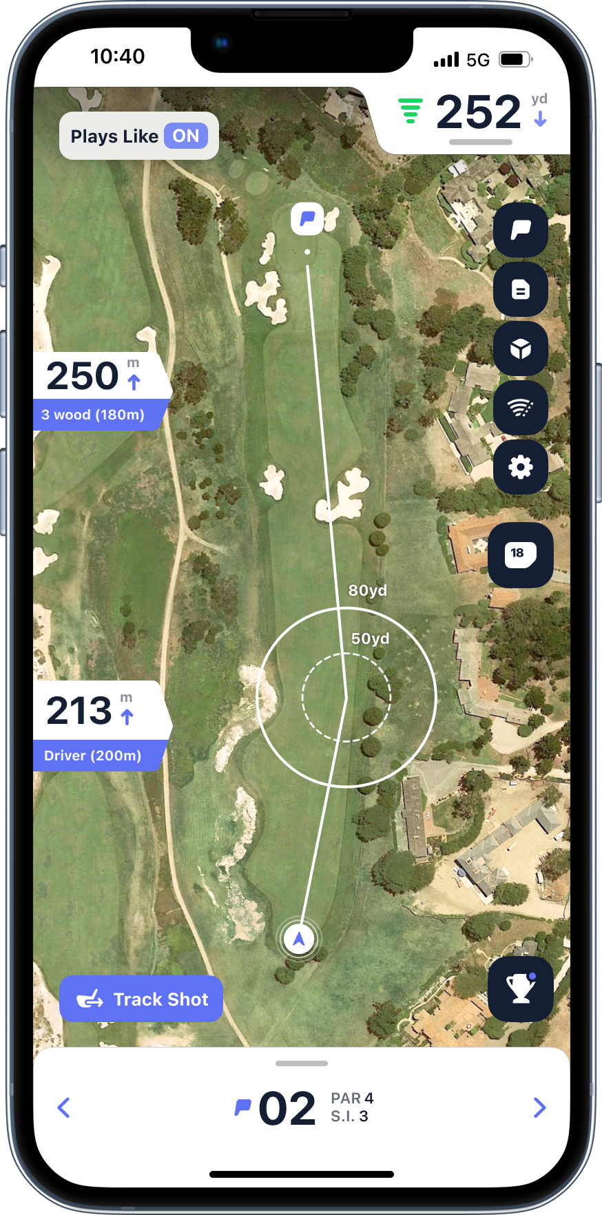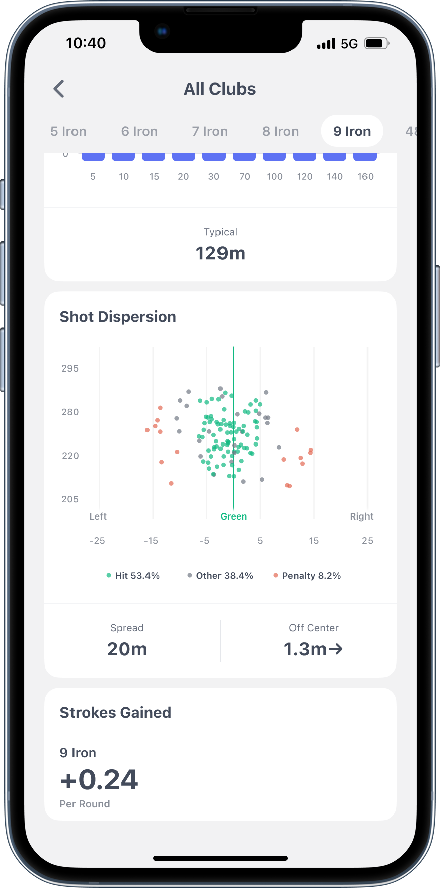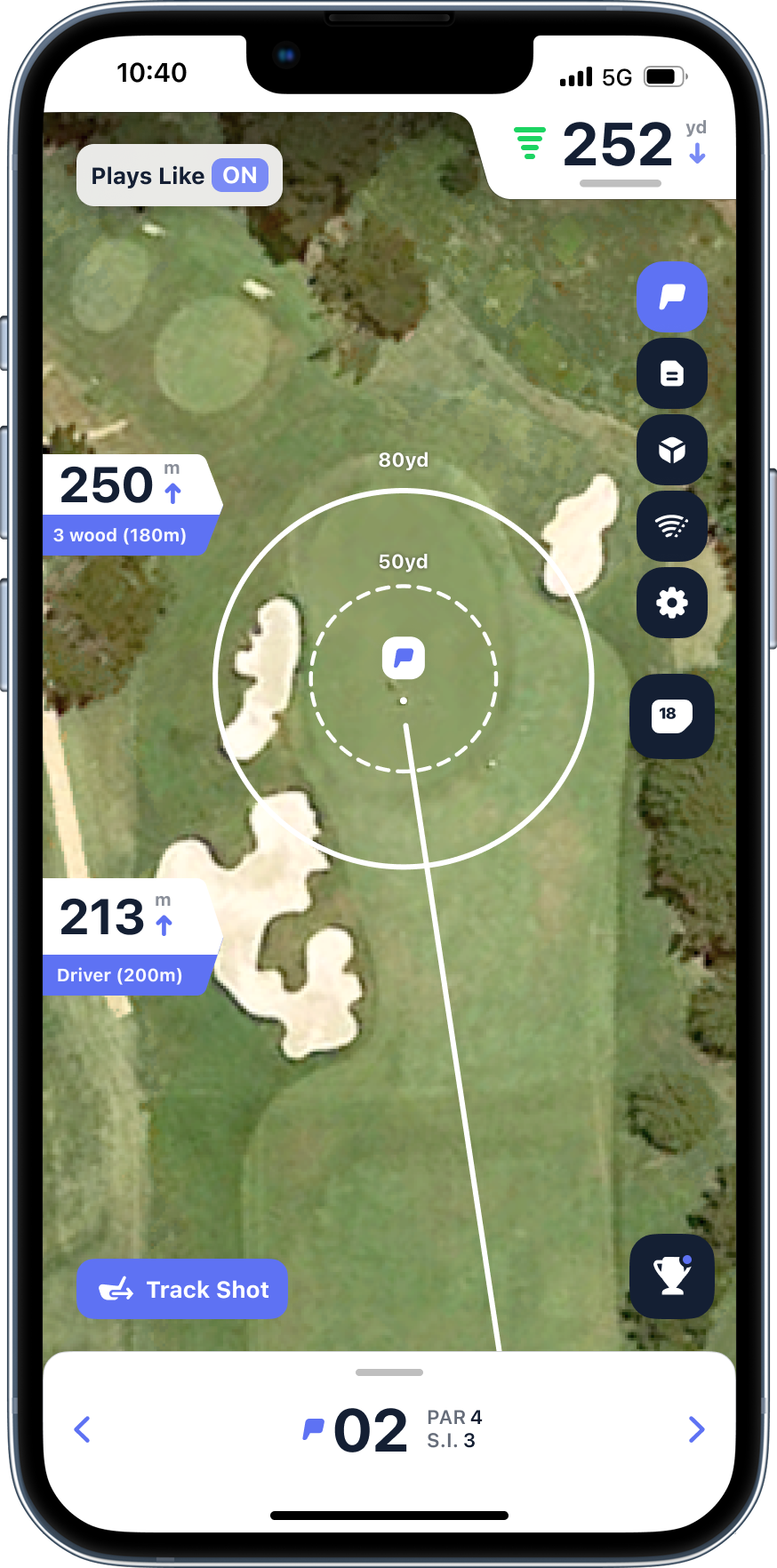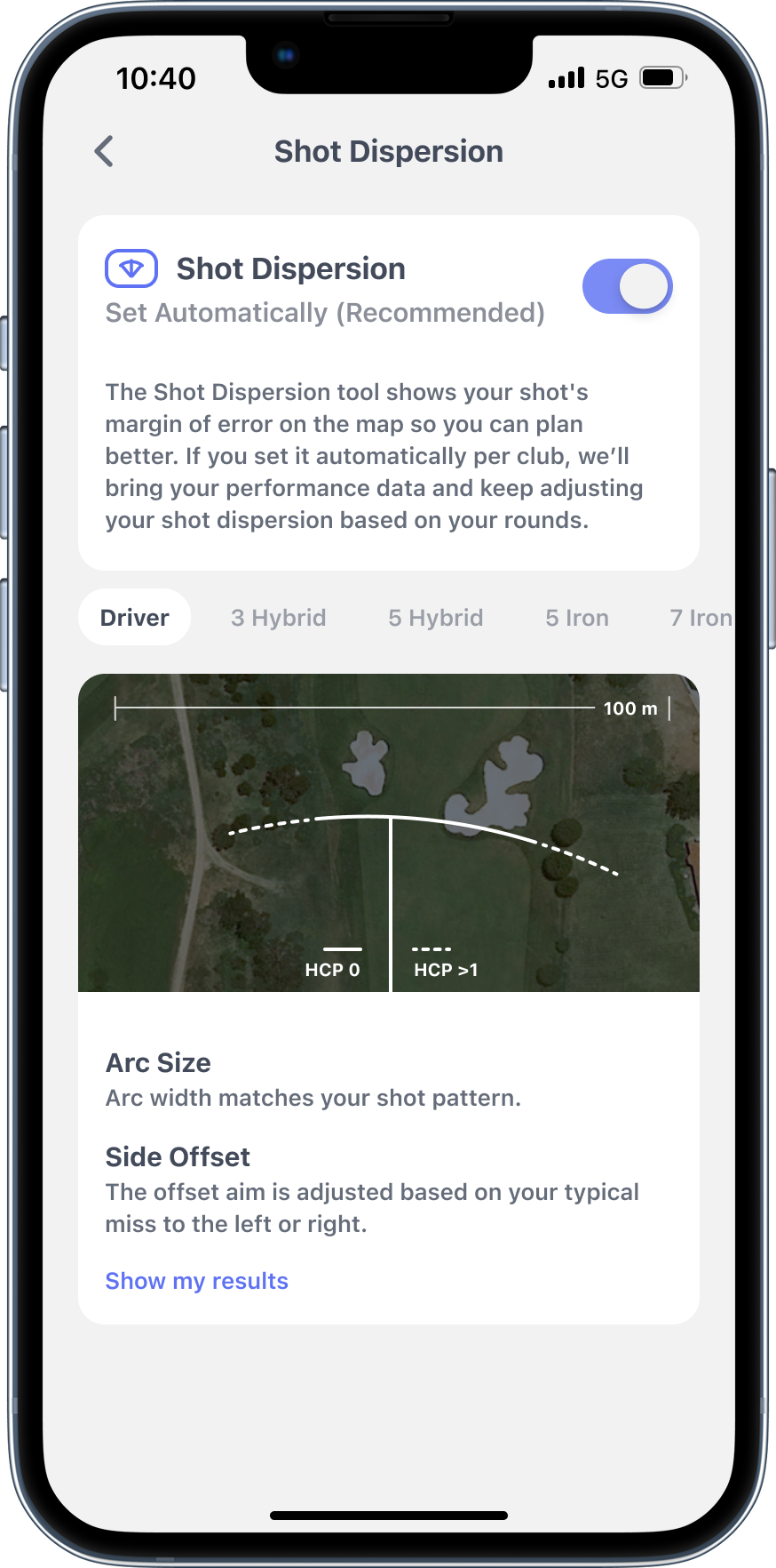 Get a circle showing your expected dispersion based on distance and club. Going at a pin tucked behind a bunker? The circle shows if you've got the margin for error - or if you should aim at the fat part of the green. Stop short-siding yourself because you thought you'd pull off a perfect shot.