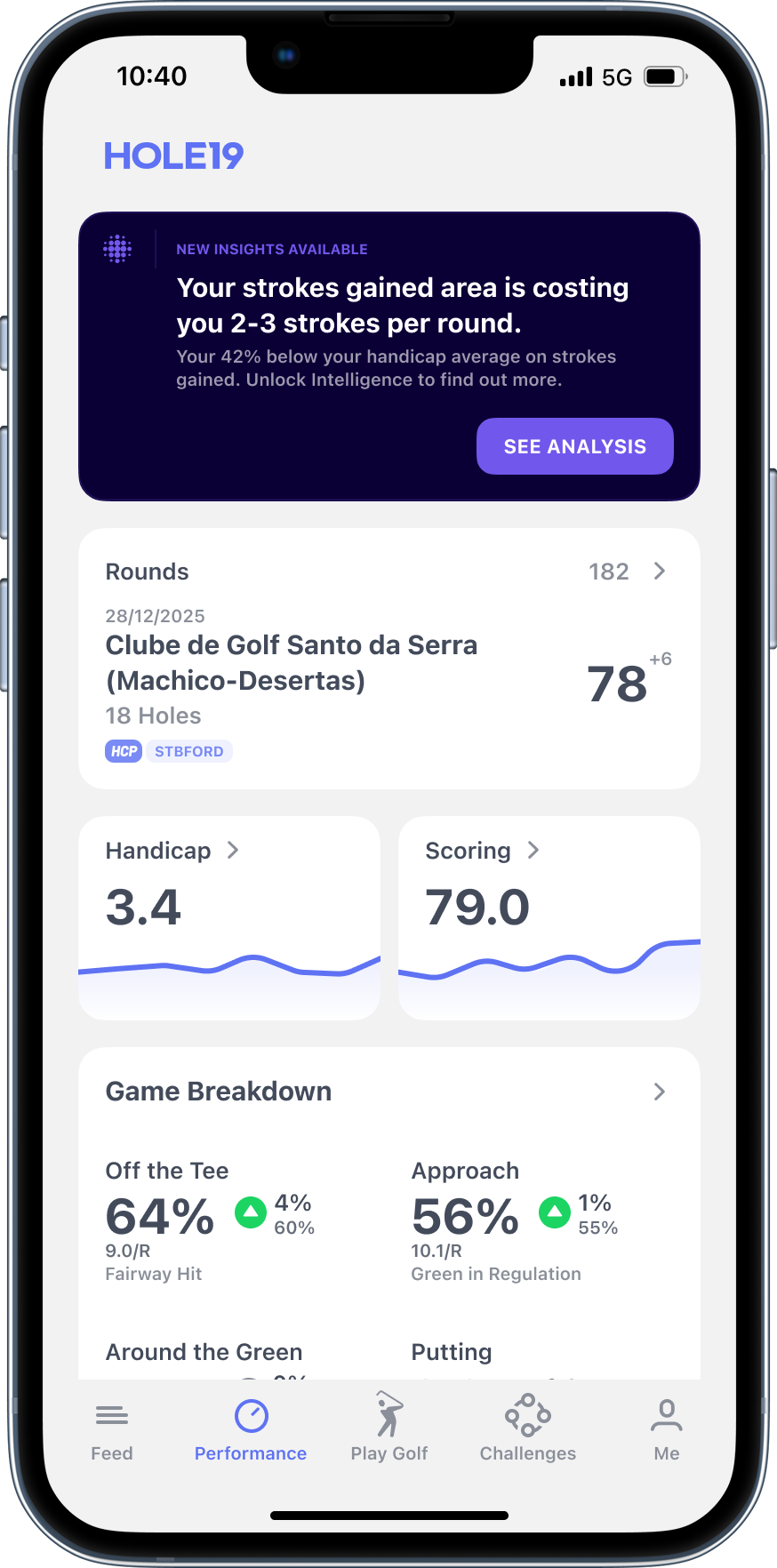 Stop guessing what's holding you back. Track every shot and get pro-level analytics that show you exactly where to improve - from driving to putting.