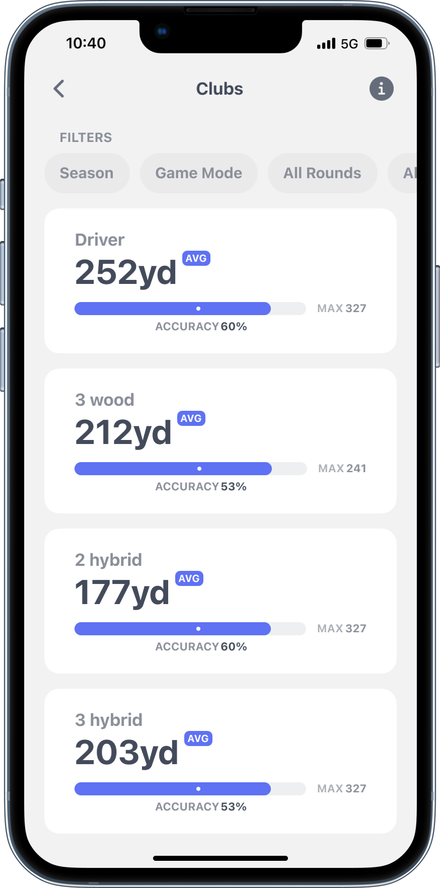 Know exactly how far you hit each club and how accurately. Our intelligent filtering system eliminates outlier shots to give you dependable distance averages you can trust when making club selections on the course.